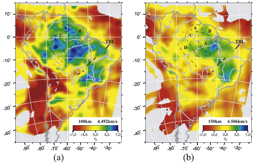 Mei Feng, Suzan van der Lee, Marcelo Assumpção, 2007, Upper mantle structure of South America from joint inversion of waveforms and fundamental-mode group velocities of Rayleigh waves. J. Geophys. Res., 112, B04312, doi:10.1029/2006JB004449. [Full text]